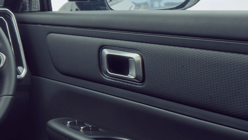 The designers used a spectacular solution - door handles that automatically extend using an electric drive. Minimal force is required to open the door.